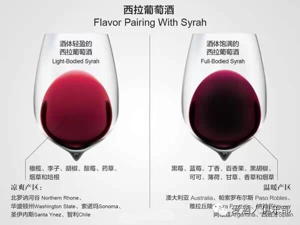 Blanc)和杜瑞莎(Dureza)天然杂交得到。这两种古老的葡萄原产自法国东部,靠近西拉的著名产区北罗讷河谷(Northern Rhone Valley)。西拉是一个极为古老的品种,估计在公元前就已经出现了。用西拉酿造出来的葡萄酒,颜色深,单宁重,酒体丰厚,口感强劲,带有黑醋栗、黑莓、蓝莓、紫罗兰、黑胡椒、干草、丁香等香气。