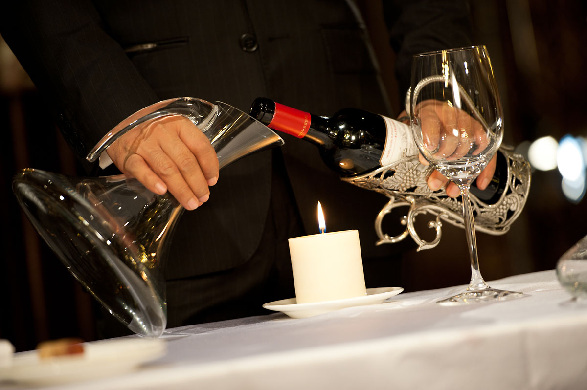 在品尝葡萄酒前,先将酒液倒入醒酒器中,让其与清新的空气充分接触,以此来分离沉淀物,舒展香气,去除青涩,柔顺酒质。这个过程即醒酒(Breathing),也称“呼吸”。